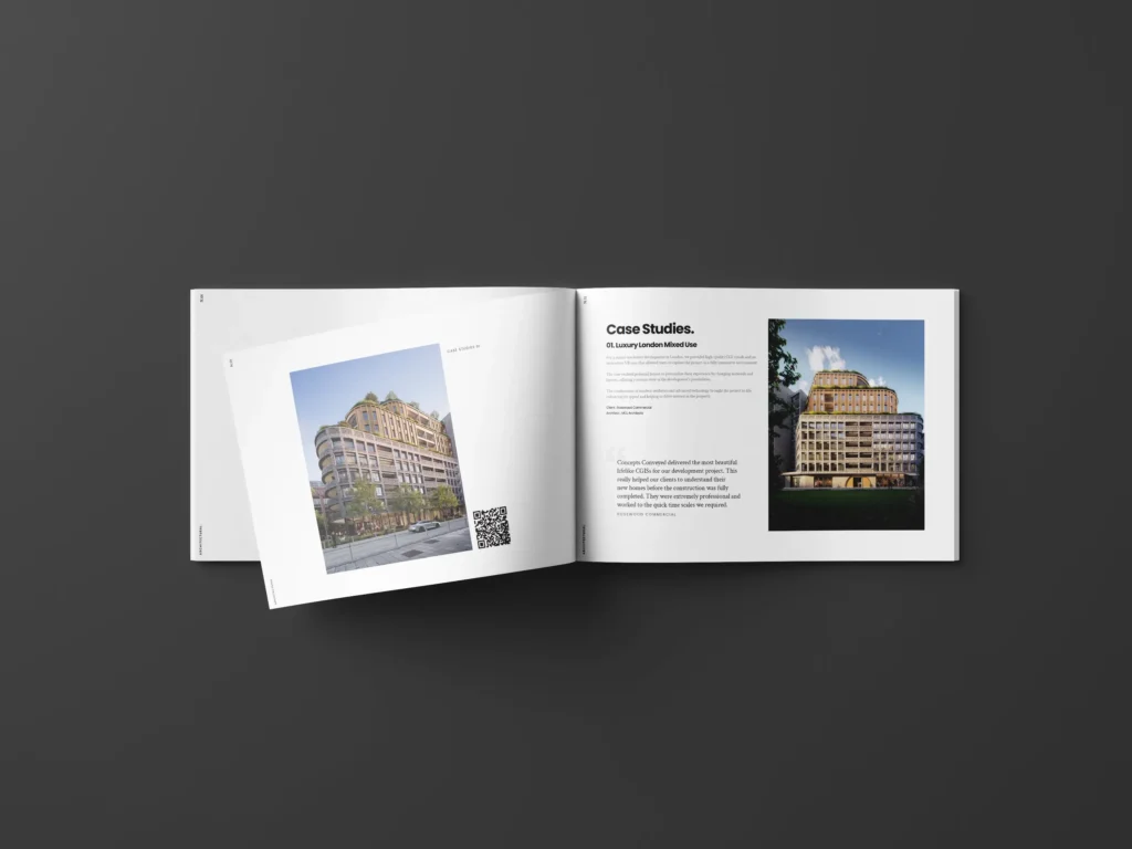 Concepts Conveyed needed two brochures to showcase their architectural and landscaping designs and services at FutureScape London 2024, a leading industry expo. With their ethos—Present, Inspire, Grow—at the core, they wanted to refine their brand presence. Already established in the luxury market through their designs, their previous brochures didn’t reflect their positioning and they needed materials that matched their reputation. The result is a sleek, visually striking set of brochures delivered within a tight two-week turnaround, ensuring their brand stood out on the global stage..